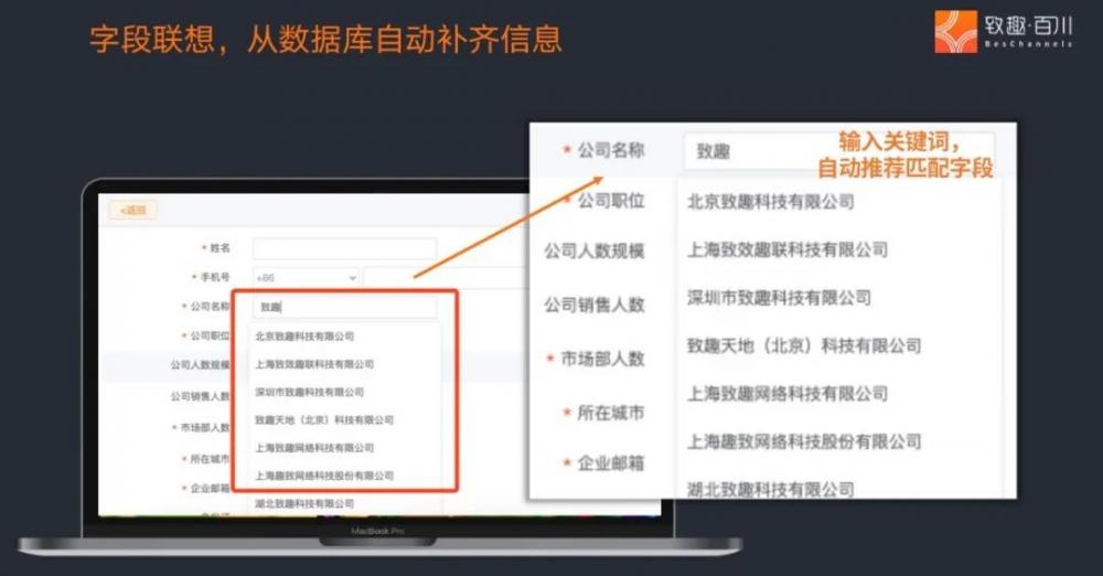 留资表单最重要的是留下号码,切记不要把后续为了“结婚”成单而调查户口的问题,图省事放在同一个留资表单里。充分为访客考虑,公司名可以自动联想补全,职位可以设置为下拉选择字段方便统一分类。总之怎样省事怎样来,让再懒的人也留下来。