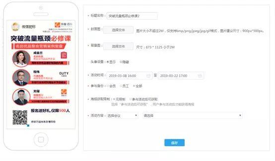 设置裂变门槛后,只需在后台上传会议海报,设置扫码后系统下发的提示文字与链接,即可在3分钟内轻松搞定裂变。